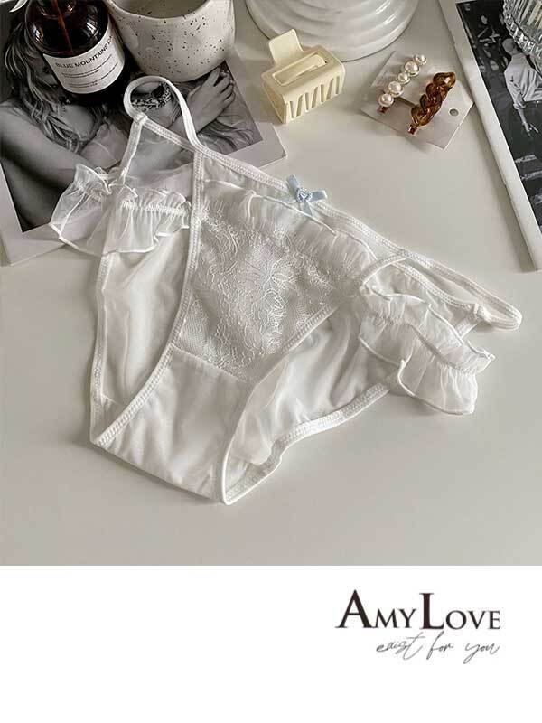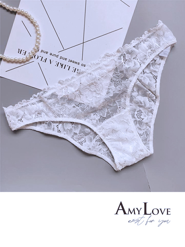 小情事蕾絲簍空蕾絲低腰三角褲 (白色) M-L