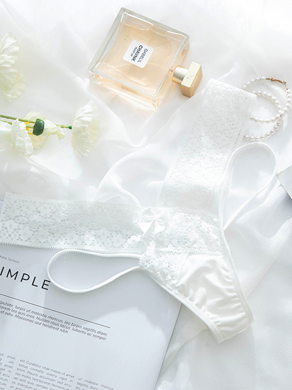 法式性感三角地帶蕾絲低腰丁字褲 (白色)