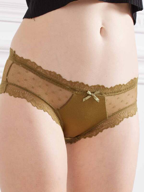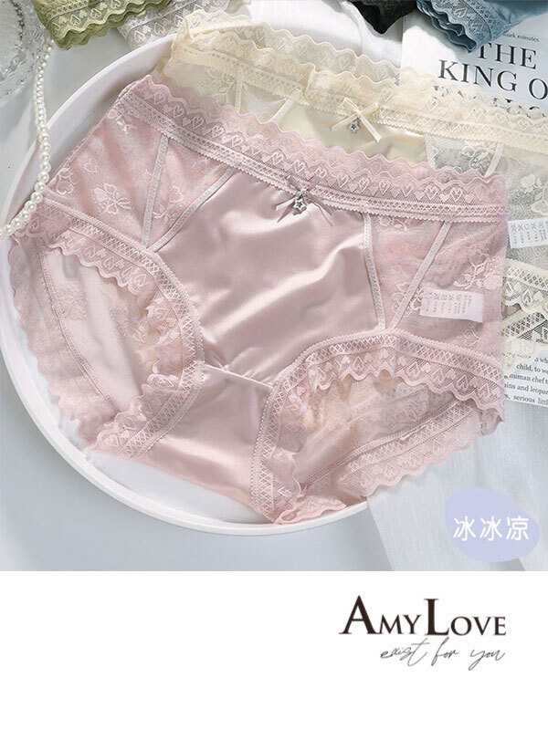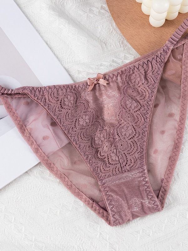 輕薄絲滑鏤空蕾絲棉質低腰三角褲(豆沙) FREE