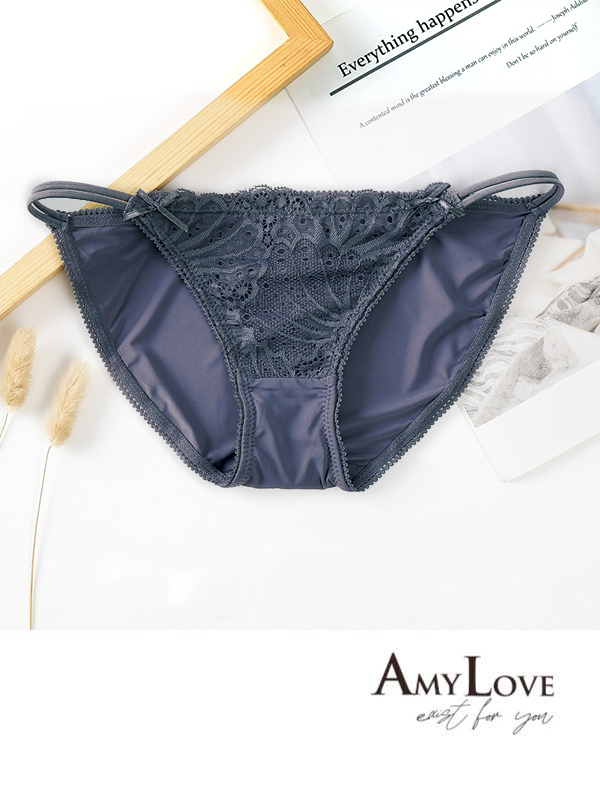 簍空小花蕾絲輕奢緞面條低腰三角褲 (灰色) L-XL