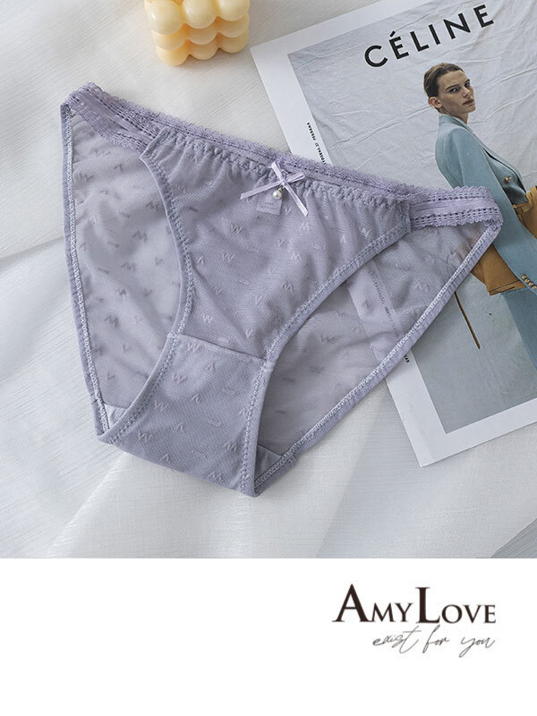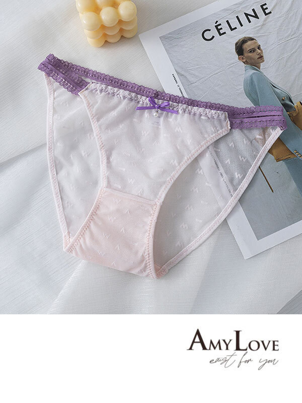 高透氣網紗小條蕾絲性感三角褲 (紫色) M-L