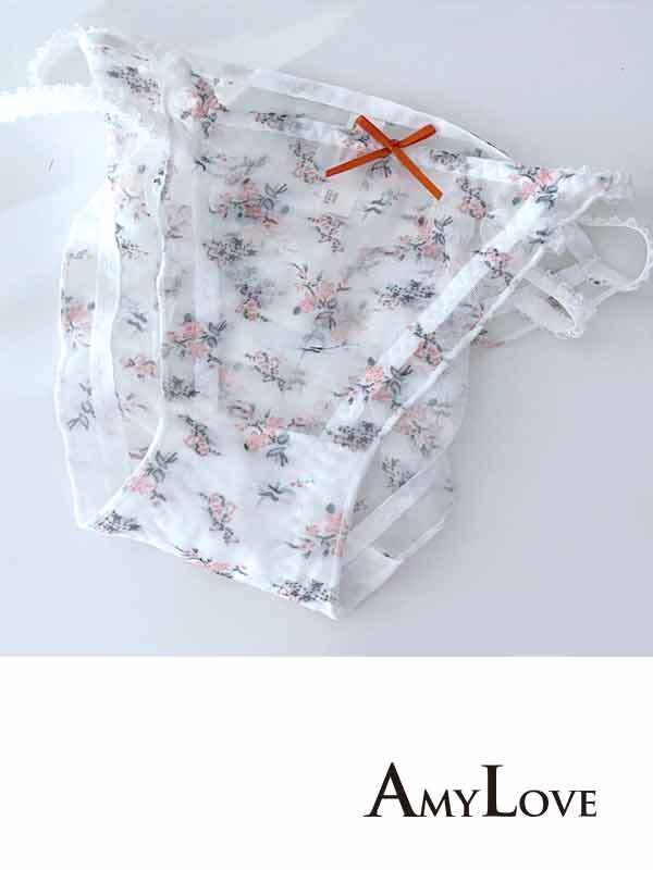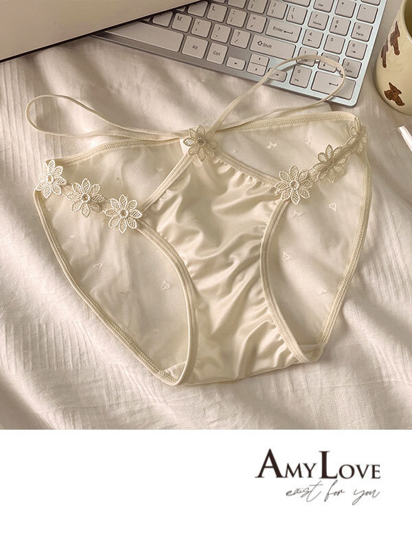 高透氣網紗小條蕾絲性感三角褲 (小花白) M-L