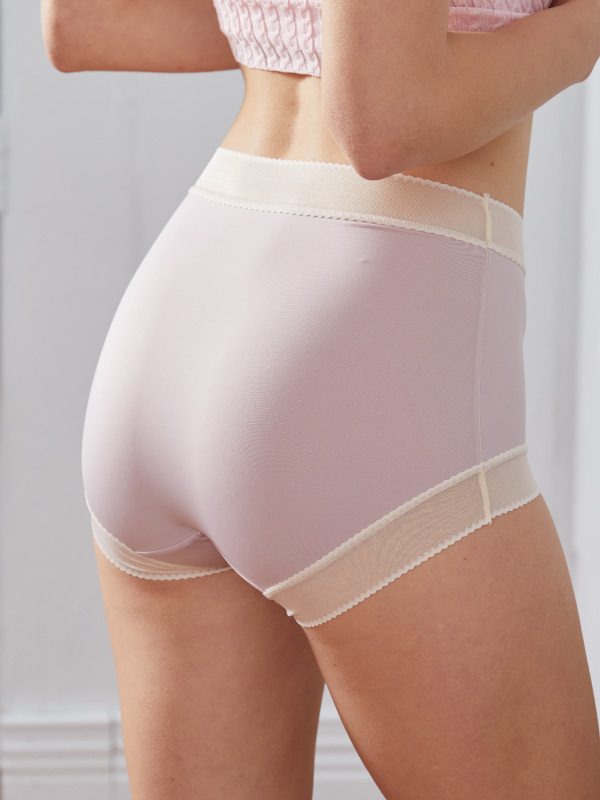 親膚柔感簍空蕾絲蠶絲高級褲 (粉藕色)