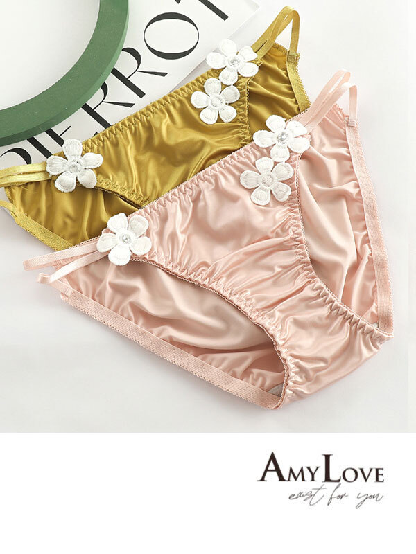 小花刺繡絲滑雙細條三角褲 (粉色) L-XL