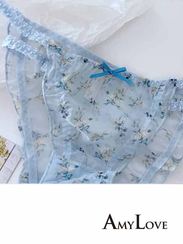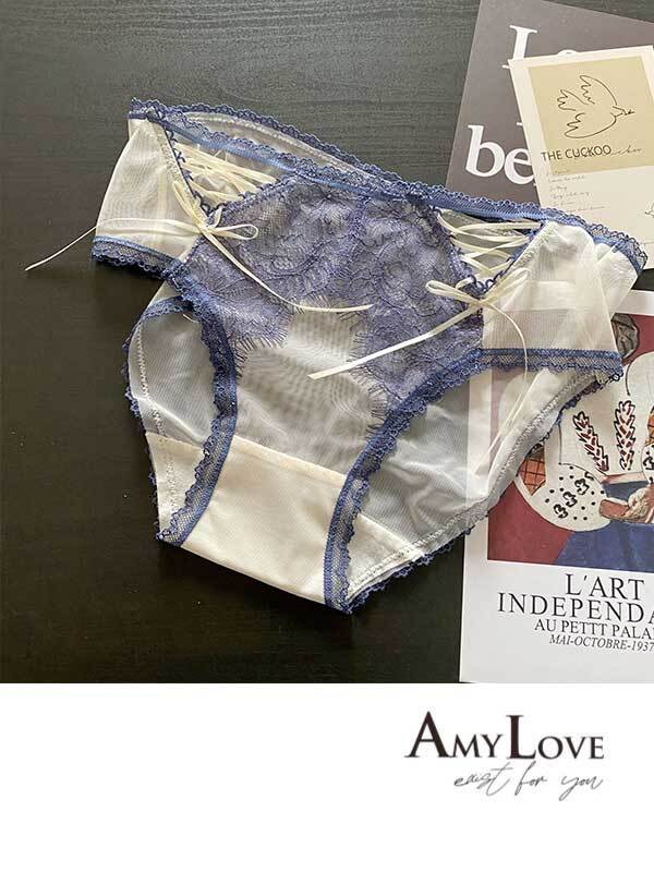 輕薄絲滑鏤空蕾絲棉質低腰三角褲(晴天藍) FREE