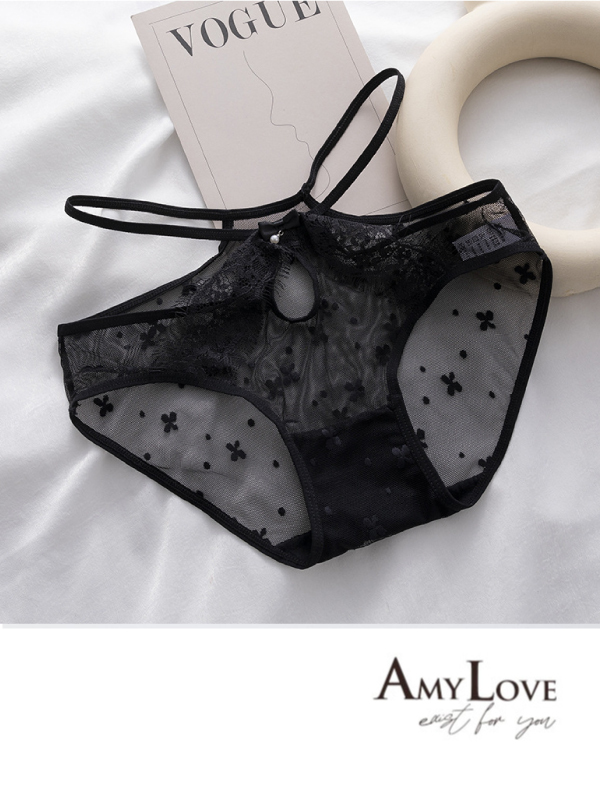 小情事蕾絲簍空蕾絲低腰三角褲 (黑色) M-L