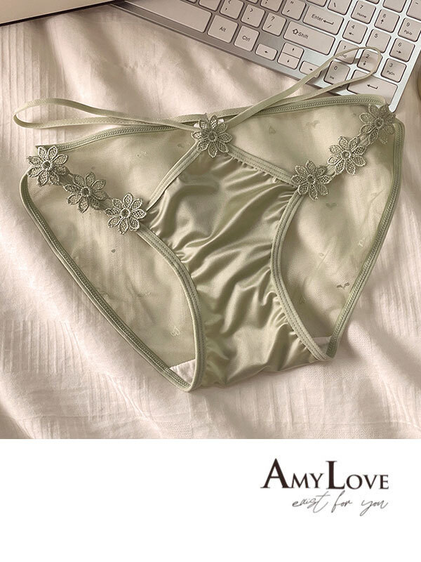 小浪漫蕾絲簍空蕾絲低腰三角褲 (綠) FREE