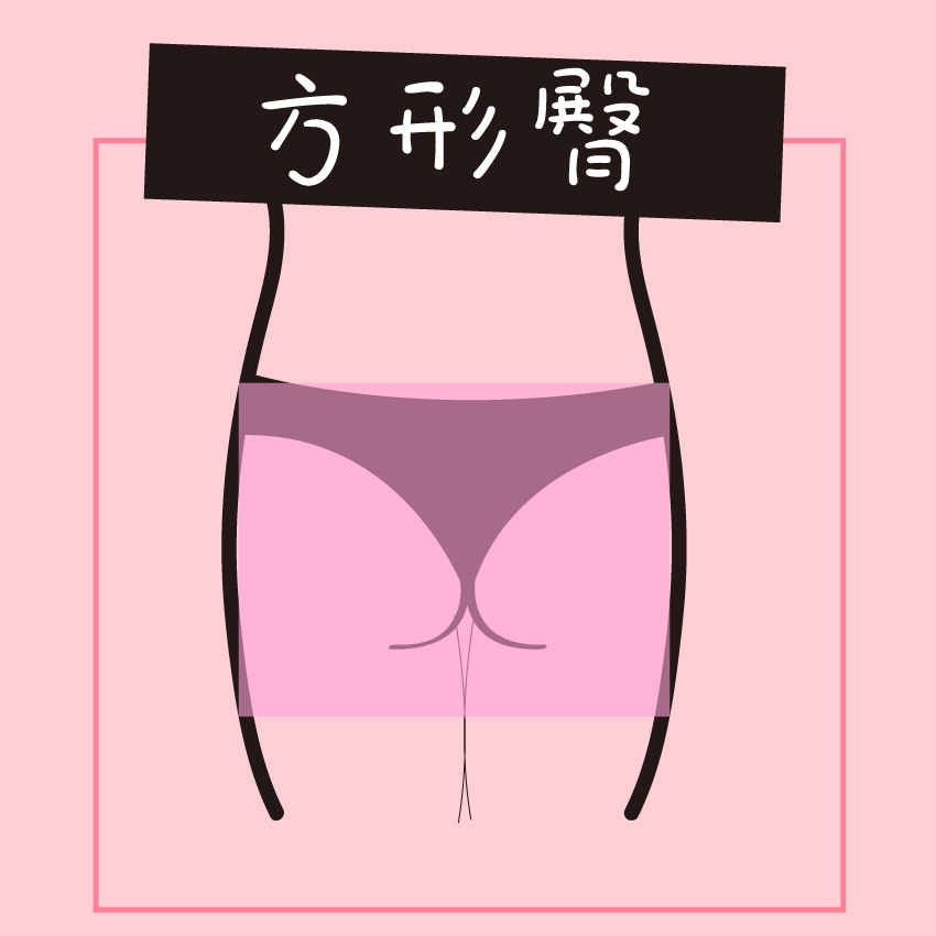 有些人的臀部可能比較方方正正的,就像一塊蛋糕一樣,沒有太多的曲線。這樣的臀型給人一種中性、幼稚的感覺,但也同時給人一種俐落、利落的感覺!如果你是這樣的臀型,可以選擇一些有彈性、貼身的內褲款式,這樣可以塑造出更好的曲線,讓你的身形看起來更加女性化!